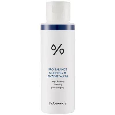 Dr.Ceuracle Pro-Balance Morning Enzyme Wash — слабокислотное очищающее средство на основе мягкой энзимной пудры избавляет от лишнего себума, обеспечивает гладкость и здоровый цвет лица, не травмируя кожу.Аминокислотная энзимная пудра с кукурузным крахмалом и солодовым сахаром мягко и бережно заботится об очищении вашей кожи, избавляет ее от лишнего себума, вырабатываемого во время сна.