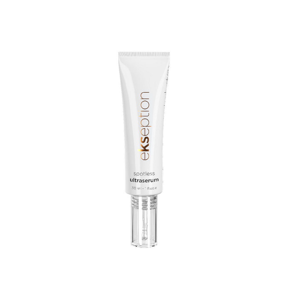 Ексклюзивна висококонцентрована сироватка Ekseption Spotless Ultraserum для швидкого видалення пігментних плям будь – якого походження. Поєднує полігідроксикислоту з гексил-резорцином і ніацинамідом. Формула забезпечує надзвичайний комфорт під час і після нанесення з легким і шовковистим відчуттям шкіри. Емульсія містить трансдермальний бустер для посилення проникнення активних інгредієнтів. Ефект помітний вже після перших використань.