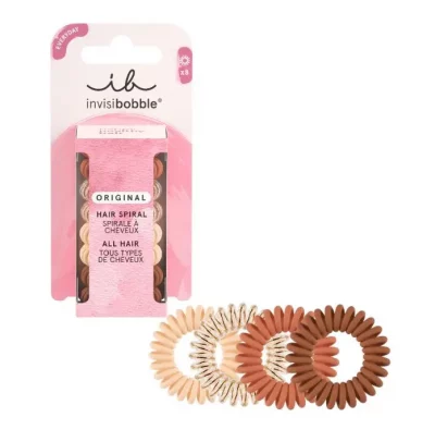 Іnvisibobble ORIGINAL Cafe au Lait підходять для всіх типів волосся, надійно фіксують зачіску, не залишають заломів і не викликають головний біль. Крім того, вони не намокають і не викликають алергію при контакті зі шкірою, оскільки виготовлені зі штучної смоли.